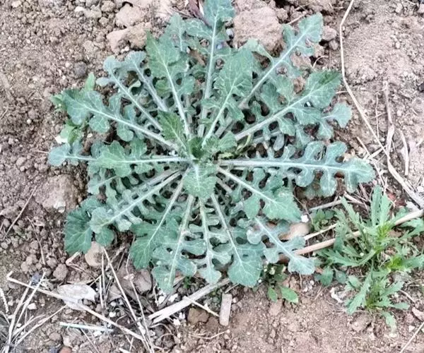 一年生草本,高30-100厘米。茎单生,很少簇生,通常纤细,被稀疏蛛丝毛,上部常分枝,少有不分枝的。基生叶长椭圆形或倒披针形,花期通常枯萎;中下部茎叶与基生叶同形,长4-15厘米或更长,宽1.5-5厘米或更宽,全部叶大头羽状深裂或几全裂,侧裂片2-6对,通常4-6对,极少为1对,倒卵形、长椭圆形、匙形、倒披针形或披针形,向基部的侧裂片渐小,顶裂片大,长菱形、三角形或卵形,全部裂片边缘三角形锯齿或重锯齿,侧裂片边缘通常稀锯齿,最下部侧裂片通常无锯齿;有时全部茎叶不裂或下部茎叶不裂,边缘有锯齿或无锯齿。全部茎叶质地薄,两面异色,上面绿色,无毛,下面灰白色,被厚或薄绒毛,基生叶及下部茎叶有长叶柄,叶柄长达8厘米,柄基扩大抱茎,上部茎叶的叶柄渐短,最上部茎叶无柄。