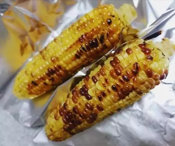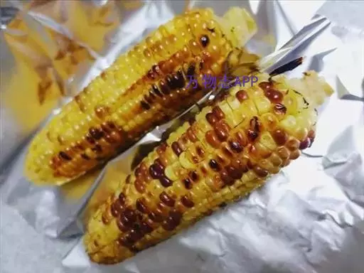 (2)取玉米1根用筷子固定,另一根用铝箔纸包起,并加入调味料A,包密后放入烤架上烧烤,至熟透约须5分钟左右,也可以放入家中烤箱中烤也很方便。