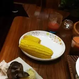 (4)将烤网洗净放在碳火上,放入由竹筷固定好的玉米,先烤三分熟后,再涂上调味料B,继续烤,并须翻动玉米,以能让玉米能入味,烤至熟透并微焦香,即可食用。 玉米可以撒上芝麻或起司烤,味道也很好。