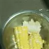 2、娃娃菜对半切成条状,用热水焯熟,垫在碗底备用;