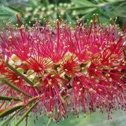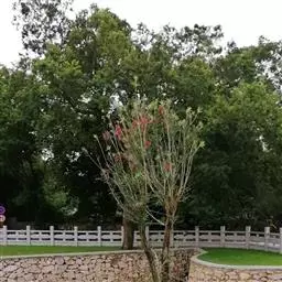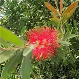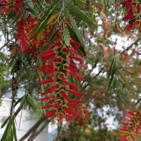 红千层是桃金娘科红千层属的常绿小乔木植物。红千层树皮坚硬,灰褐色,嫩枝有棱,初时有长丝毛,…