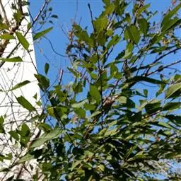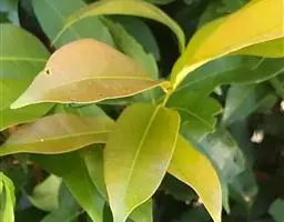 常绿灌木,成长缓慢,树高4-15米,枝梢分枝与成枝能力较强,树姿开张,树冠为自然圆头形。根系分布较浅,深度小于70厘米,以须根为主。树皮细薄,呈灰白色或浅褐色至微红色,具有缓慢脱落特性;果实采收后至萌发新芽期间,老旧树皮会剥落。叶对生,叶柄短,有茸毛,叶片革质,深绿色有光泽,披针形或椭圆形。