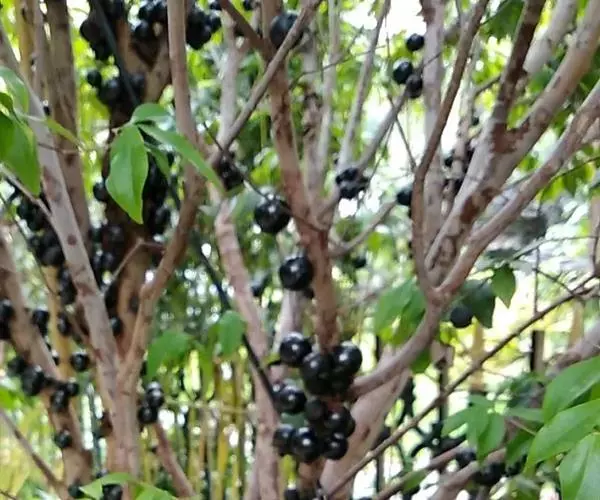 嘉宝果(学名:Plinia cauliflora (Mart.) Kausel)是桃金娘科树番樱属植物。常绿灌木,成长缓慢,树高4-15米,枝梢分枝与成枝能力较强,树姿开张,树冠为自然圆头形。叶对生,叶柄短,有茸毛,叶片革质,深绿色有光泽,披针形或椭圆形。花簇生于主干和主枝上,有时也长在新枝上;花小,白色,雄蕊多数。花落后,小幼果三五成群地探出来,果实球型,果实从青变红再变紫,最后成紫黑色。成熟的果实直径1.5-4厘米。具1-4颗种子。果皮外表结实光滑。 [1-2]