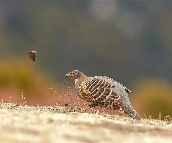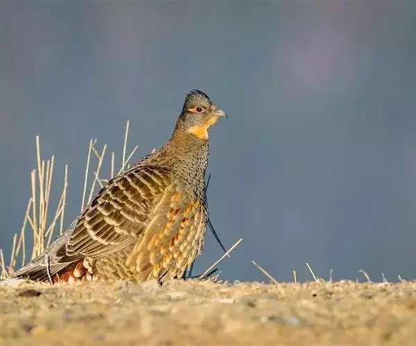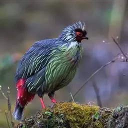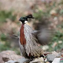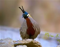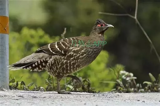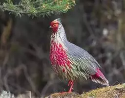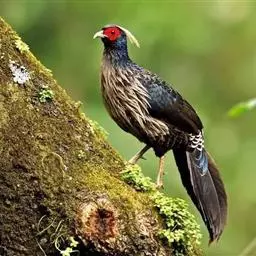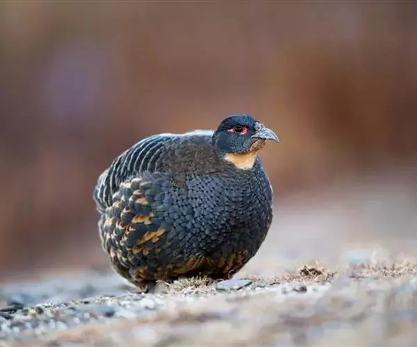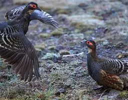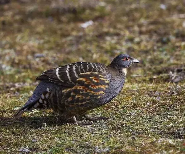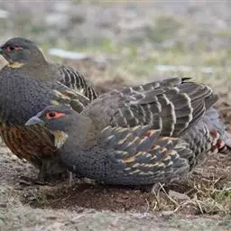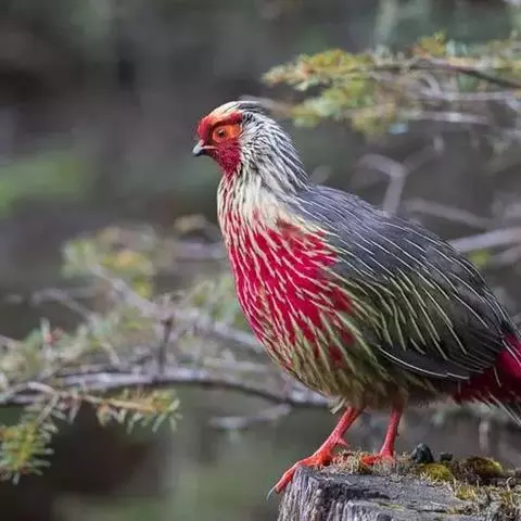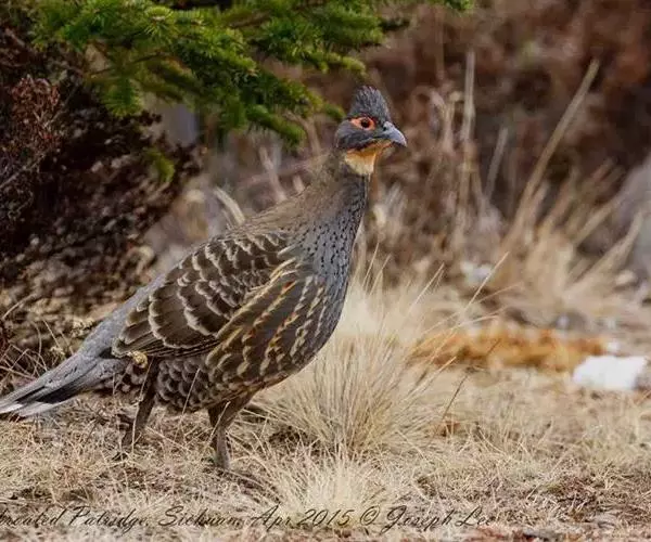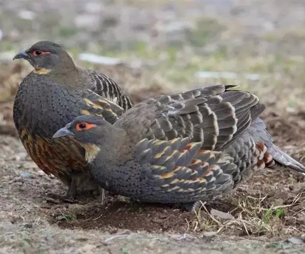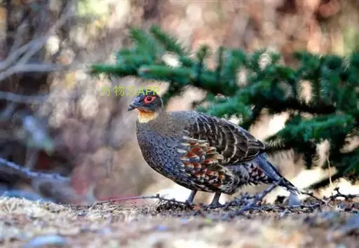 雉鹑(学名:Tetraophasis obscurus):体长44-54厘米。上体大都褐色,头顶与两侧深灰,头顶与枕羽中央有黑褐色纵纹。飞羽暗褐色,羽缘具白色和棕色端斑。中央一对尾羽灰褐色具白色端斑,外侧尾羽灰裼色具黑褐斑,近端部为深黑色,羽端纯白。颏、喉、前颈至尾下覆羽红栗色,胸腹褐灰色,胸羽具黑褐色纵纹,腹羽杂以淡黄和棕色。