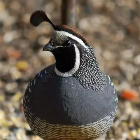 雉鹑雄性成鸟鼻孔羽黑色;额白,各羽端黑;头顶和枕部深栗色,杂以黑色或淡橄榄绿的灰色点斑;眼后具1条散黑斑的白色纵带,伸展到后颈;眼下左右各有1条同色纵带自额开始,通过眼角,延至颈侧,并与喉的后部相连;耳羽深栗色。背、腰、尾上覆羽均为栗色,具清晰而有规则的黑色横斑,眼下左右各有1条同色纵带自额开始,通过眼角,延至颈侧,并与喉的后部相连;各羽具狭窄的淡灰色羽端;外侧尾羽黑褐色,具有若干狭形白色横斑和羽端,中央1 对尾羽栗棕色,杂以黑色虫蠹状细斑,并具7-8条黑和棕白并列的横斑;大、中、小覆羽棕褐或栗褐色,具黑色虫蠹斑或块斑,并杂以白色羽干纹;初级飞羽暗褐色,外侧杂以淡栗色边缘;次级飞羽暗褐,外侧具有不规则黑斑的淡棕色宽阔横斑,羽端亦淡棕色。颏、喉黑色,边缘围以白色纵带;胸与两肋均浅栗色,具黑色横斑和白色或棕白色羽端,胸羽更杂以白色羽干纹;腹羽均呈黑、白相间的横斑,形成耀眼的斑驳;尾下腹羽淡棕栗色,具宽阔的白色羽端和狭窄的黑色次端斑。