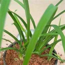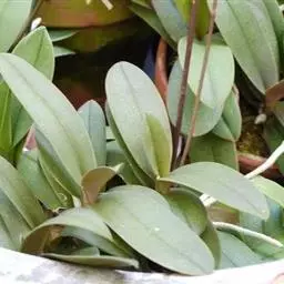 方法一 准备好兰盆及植料后,将兰株倒拿(根在上,叶在下)放于水龙头下以慢水冲洗,但水压切忌过强,以免伤兰根及叶子。用拇指和食指抓住兰头,小指抵住盆缘,用竹筷将根固定,当放入盆内时,尽量不要让根接触到盆壁。将豆粒大的混合石砾倒入盆底至三分之一处。然后倒入中粒植料至五分之四处,填实和尽量不要留下空间。将竹筷拔出,并摇实盆中植料。填实植料后,再用大粒植料埴入至距盆缘1.5厘米处。最后再倒入豆粒大植料,以将假鳞茎全部埋入土中为度,然后充分摇实。用压土工具轻压植料,并将表面弄平。种植完毕后,植料在盆中以中央稍高为好。