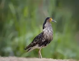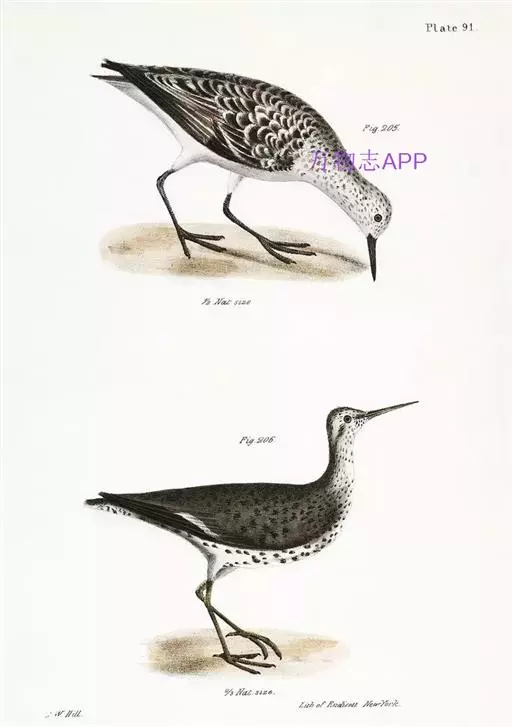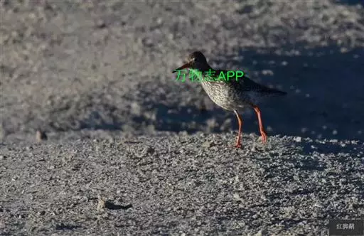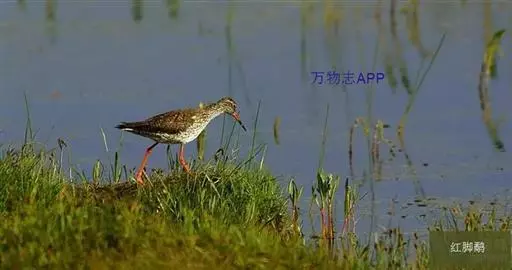 红脚鹬:体长28厘米,上体褐灰,下体白色,胸具褐色纵纹。飞行时腰部白色明显,次级飞羽具明显白色外缘。…