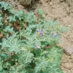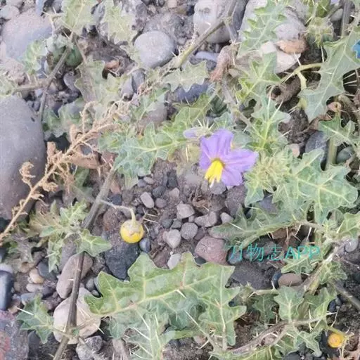 直立草本或匍匐草本,高50-70cm。有时基部木质化,植株各部均被星状绒毛和细长的针状皮刺。单叶互生;叶柄长2-3.5cm;叶片卵状长圆形,长4-6cm,宽3-4.5cm,先端尖或钝,基部近心形或偏斜,边缘深波状或深裂。聚伞花序腋外生,通常3-5花;萼钟形,5裂,外面有小刺;花冠辐状,蓝紫色,5裂,裂瓣卵状三角形,外被绒毛;雄蕊5;子房卵形圆形,花柱纤细,柱头截形。浆果球形,直径1.3-1.9cm。初时绿色并具深绿色条纹,成熟后则变为淡黄色;种子近肾形,扁平。花期冬至夏季,果熟期夏、秋季。