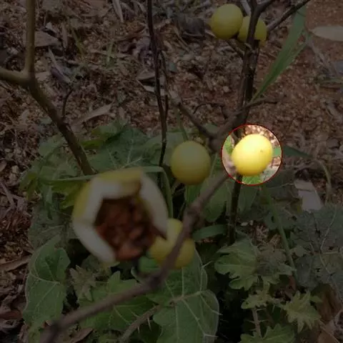 4、治头部发疮:黄果茄鲜果,切成两半,擦患处。