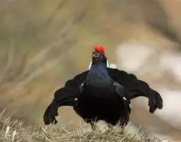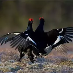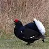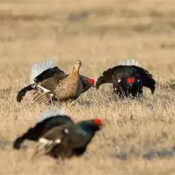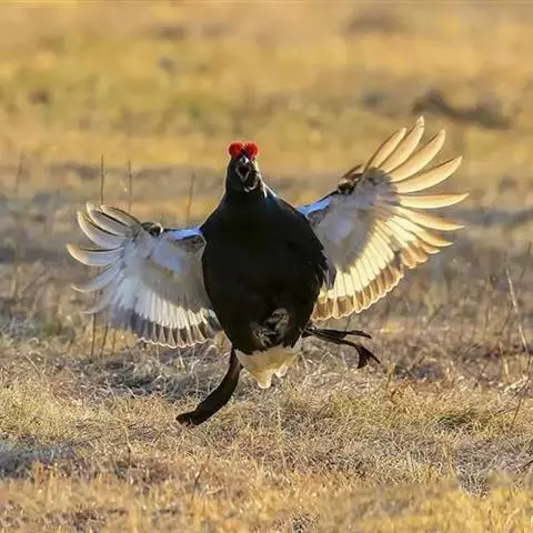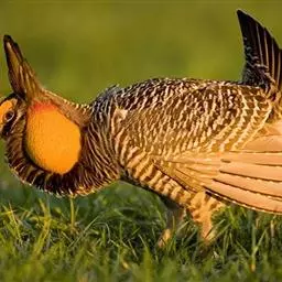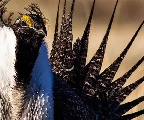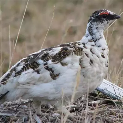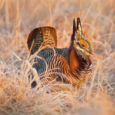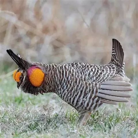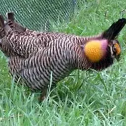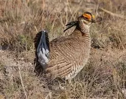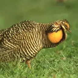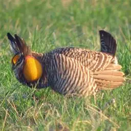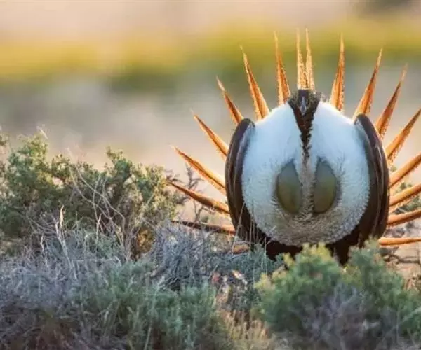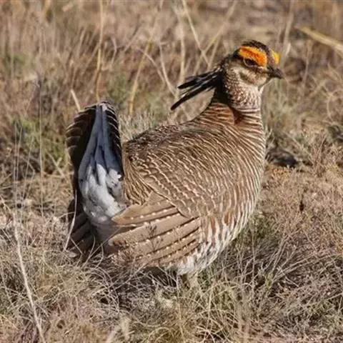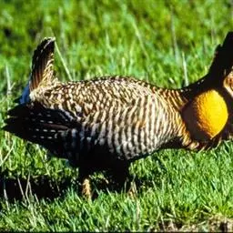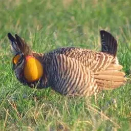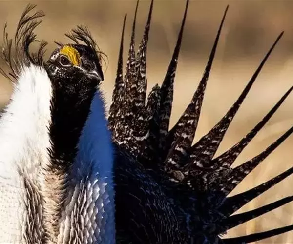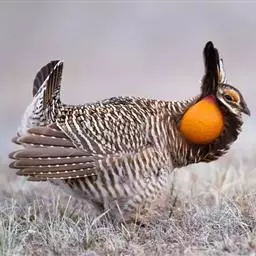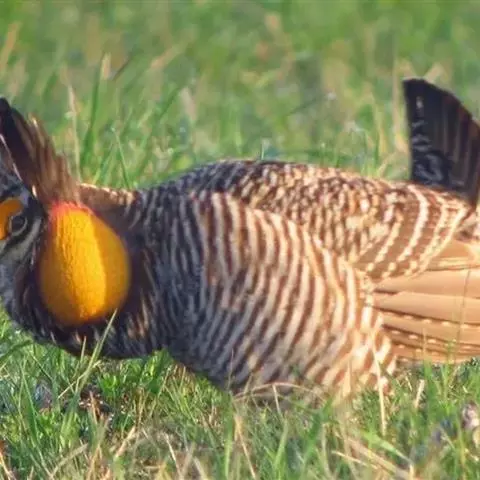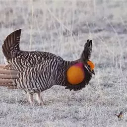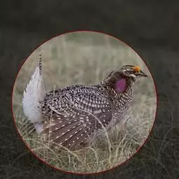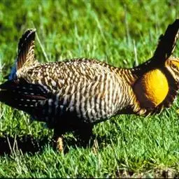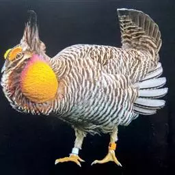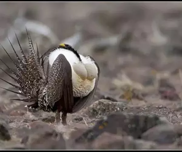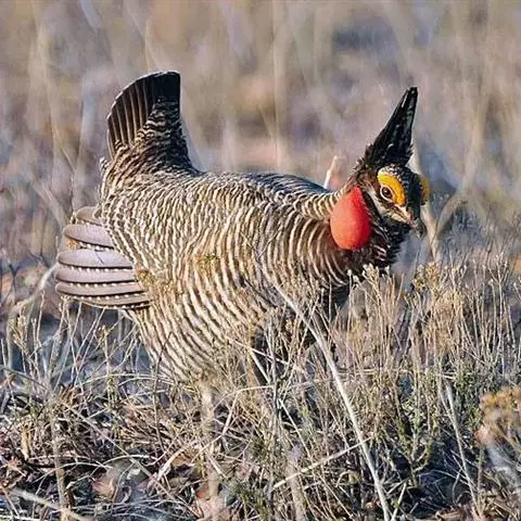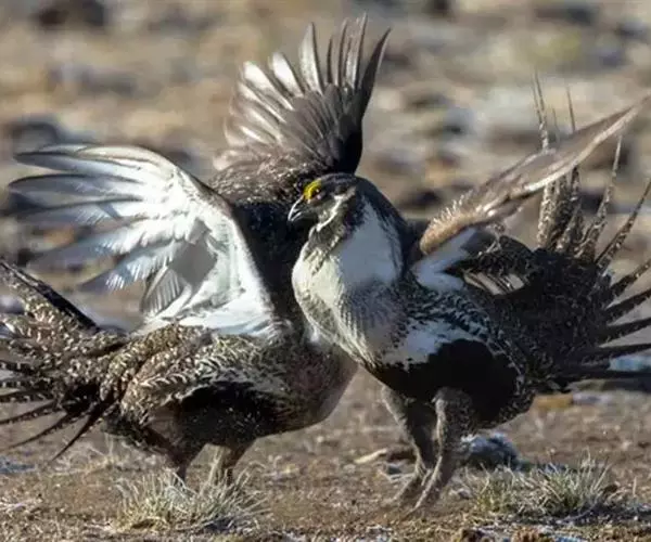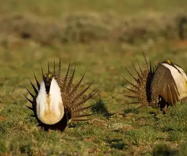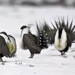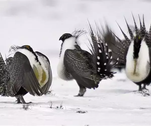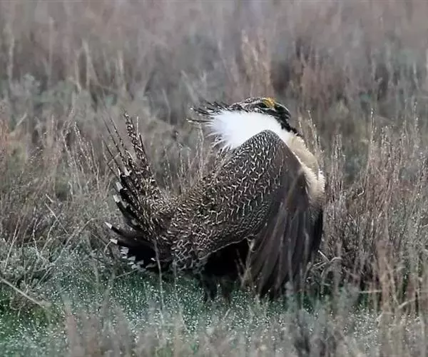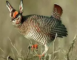 艾草松鸡(学名:Centrocercus urophasianus):是北美洲最大的松鸡。身高48-76厘米,体重2300-3200克。雄性大于雌性,更重。雄性长着两个大胸,雌性却没有胸。 颈上有两个黄色的囊,可以在求偶时充气以吸引异性。走禽,体结实,喙短,呈圆锥形,适于啄食植物种子;翼短圆,不善飞;脚强健,具锐爪,善于行走和掘地寻食。雄鸟具大的肉冠和美丽鲜艳的羽毛,早成鸟,鼻孔和脚均有被羽,以适应严寒。