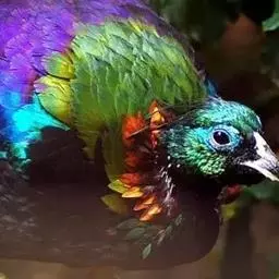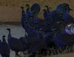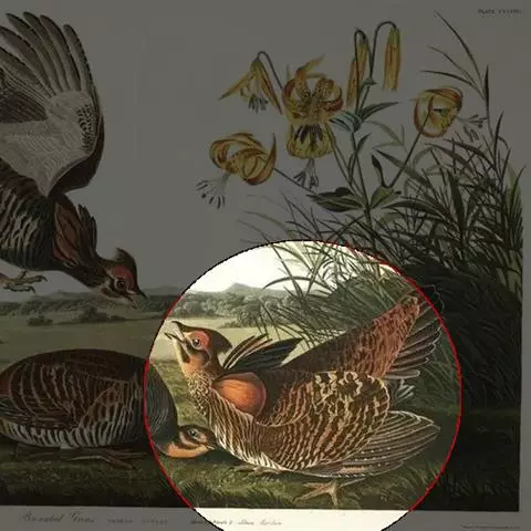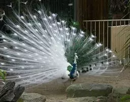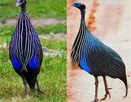 雌鸟羽色类似雄鸟毛,表面白色的斑点比雄鸟小,并有棕色和灰色的斑点。没有气囊,咽喉部位主要是灰色和白色。尾巴和雄性不一样。