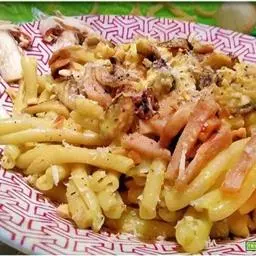 7、将剥好皮的土豆放入容器内用一个勺子将它们挤碎,把所有材料一起倒入,将调好的蛋黄油倒入,搅拌均匀后就大功告成了!(午餐肉是咸的,可以晚点再加)