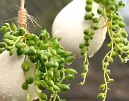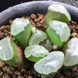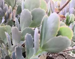 叶子表面宽厚,富肉质感且带有磨纱质感,看像石头质地;开红色小花,生于植株顶部,倒伞形密生,形状像花…