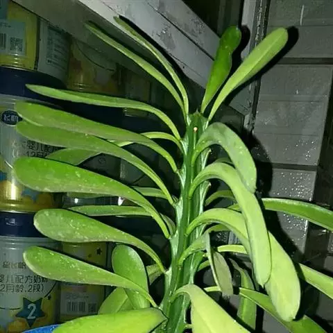 矮石斛:茎直立或斜立,粗短,纺锤形或短棒状,具许多波状纵条棱和2-5节。叶2-4枚,近顶生,革质,…