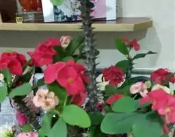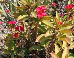 虎刺梅:别称铁海棠,是蔓生灌木植物。茎多分枝,长60-100厘米,直径5-10毫米,具纵棱,密生硬…
