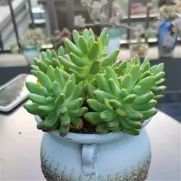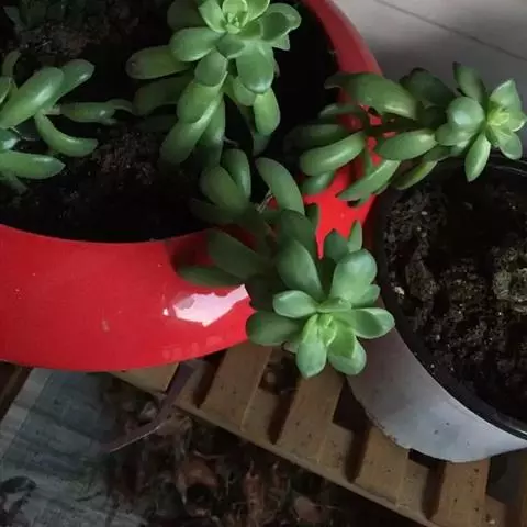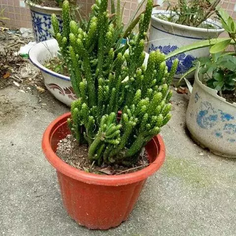 灯美人是景天科的园艺品种,多肉植物。叶片近柱状,丛生,在日照时间长、温差大的环境下会呈现橙粉色。
