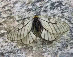 冰清绢蝶:是绢蝶科、绢蝶属的一种蝴蝶。翅展60-70毫米。翅白色,翅脉灰黑褐色。…