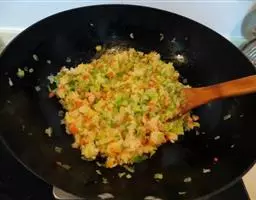 什锦炒饭是一道色香味俱全的名点,以江苏扬州的炒饭最知名。虾仁去泥肠洗净,加料酒、胡椒粉、淀粉上浆。…