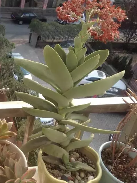 大瑞蝶,是景天科石莲花属多肉植物,初夏开花、穗状花序长度可达30㎝以上、开橘色钟形花朵。