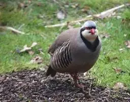 体大的灰褐色鹑类。胸灰色具黑色细纹。与相似种类四川雉鹑不同处在于栗色喉块外缘近白。有猩红色眼周裸皮。…