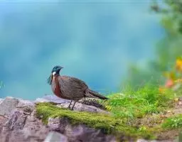 蓝马鸡是珍稀名贵的禽类,羽毛美丽,可作装饰用,头侧绯红,耳羽簇白色、突出于颈部顶上,通体蓝灰色,…
