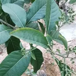 旱生型灌木或小乔木,高至6米。叶互生,长卵形,先端尖,叶面亮灰绿色,背面灰白色,有特殊气味和辣味。 通常具柄或无柄,不下延,全缘或具齿,羽状脉,稀具近基三出脉两面或下面常具腺。
