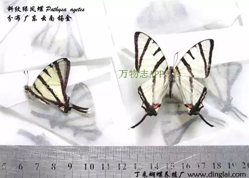 斜纹绿凤蝶,Pathysa agetes ( Westwood , 1843 ),凤蝶科,绿凤蝶属的一种蝴蝶,是世界上比较珍稀的蝶类昆虫之一,分布于中国,印度和东南亚等地。