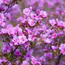 兴安杜鹃是杜鹃花科、杜鹃花属半常绿灌木,高可达2米,分枝多。叶片近革质,椭圆形或长圆形,…