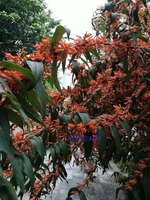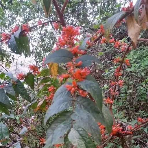 虾子花(学名:Woodfordia fruticosa (L.) Kurz.)是千屈菜科,虾子花属灌木。高3-5m,有长而披散的分枝;幼枝有短柔毛;叶对生,近革质,披针形或卵状披针形,顶端渐尖;短聚伞状圆锥花序,被短柔毛,花瓣小而薄,淡黄色;蒴果膜质,线状长椭圆形;种子小,卵状或圆锥形,红棕色。花期春季。