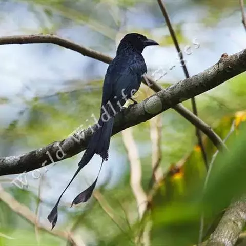鸦嘴卷尾全长约27厘米。雄性成鸟(繁殖羽)