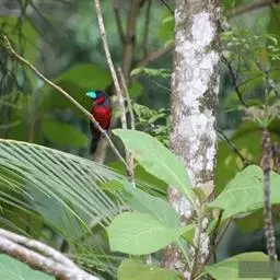 红头咬鹃: 体大,体长约33厘米,体重75-110克。头、颈暗绯红色;背、肩锈褐色。两翅黑色,…