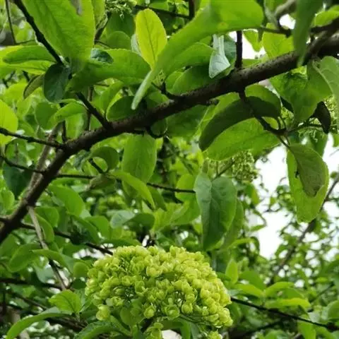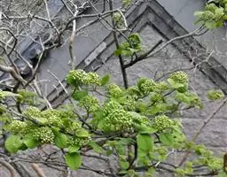 皱叶荚蒾是五福花科荚蒾属的小乔木植物。植株高达4米;叶柄及花序均被由黄白色、黄褐色或红褐色簇状毛组成的厚绒毛;小枝粗壮,稍有棱角;叶革质,卵状矩圆形至卵状披针形;聚伞花序稠密,总花梗粗,四角状,花冠呈现白色,雄蕊高出花冠;果实红色,后变黑色,宽椭圆形,无毛;花期为4-5月;果熟期为9-10月。皱叶荚蒾原产于中国,分布于陕西、湖北、四川及贵州等地。生长于山坡林下或灌丛中,海拔800-2400米。其性喜好阳光,耐半阴,喜温暖,有一定的耐寒性,喜湿润,不耐涝,耐中度盐碱,但在深厚肥沃、排水良好的中性或微酸性沙质土壤中生长更好,耐修剪,生长缓慢。其一般的繁殖方式为播种和扦插繁殖。皱叶荚蒾味苦,性凉。具有清热解毒、凉血止血的功效。可用于湿热痢疾、痈疽疮疖、咳血、吐血、便血、跌打损伤等疾病。皱叶荚蒾给人以郁郁葱葱的景象,全年观叶、春季观花