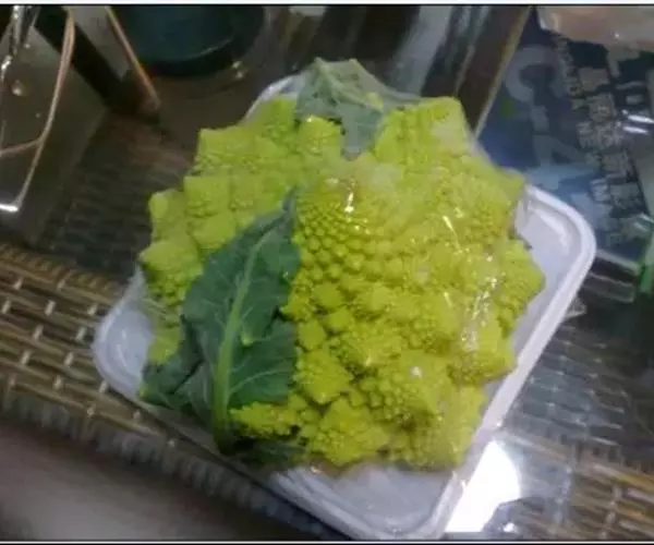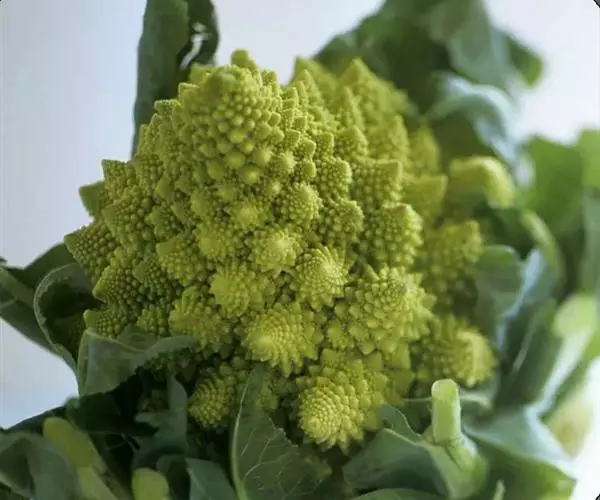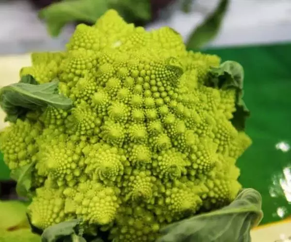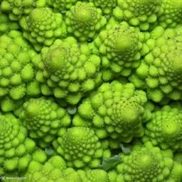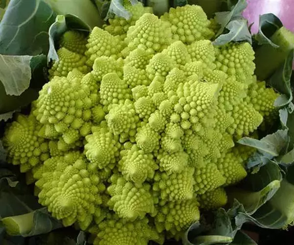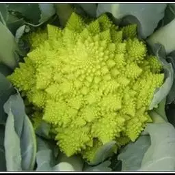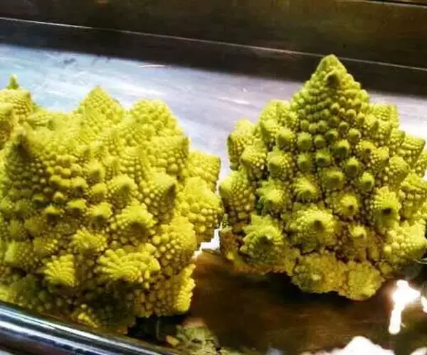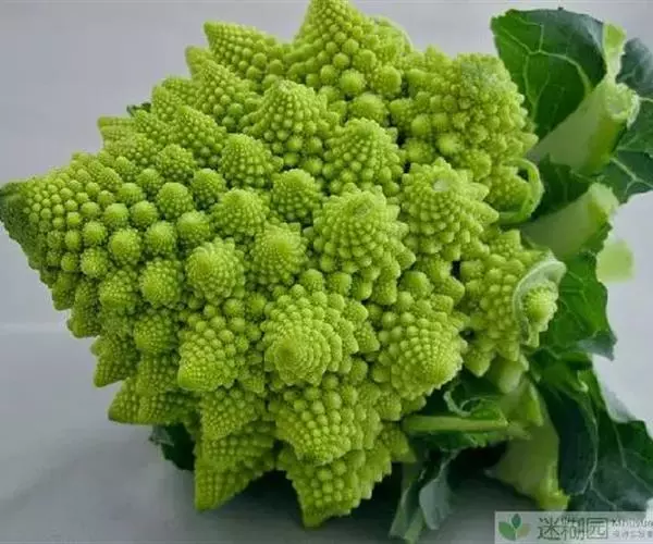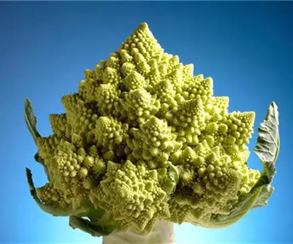 这种花椰菜的变种是最重要的不规则碎片形蔬菜。它的图案是斐波纳契数列,或称黄金螺旋型(一种对数螺旋,小花以花球中心为对称轴,螺旋排列)的天然代表。