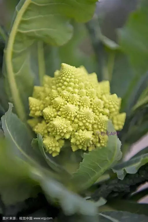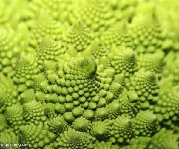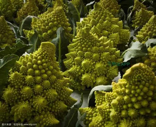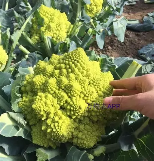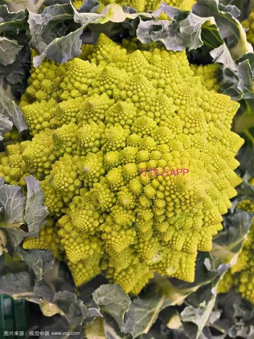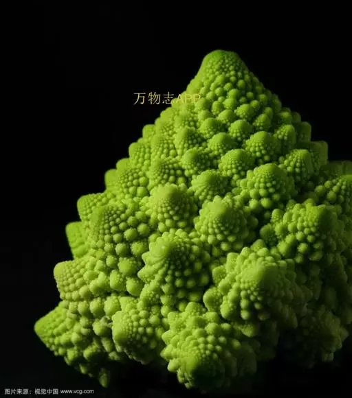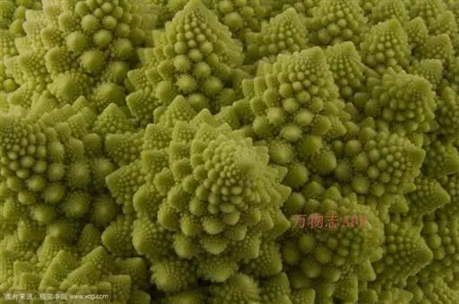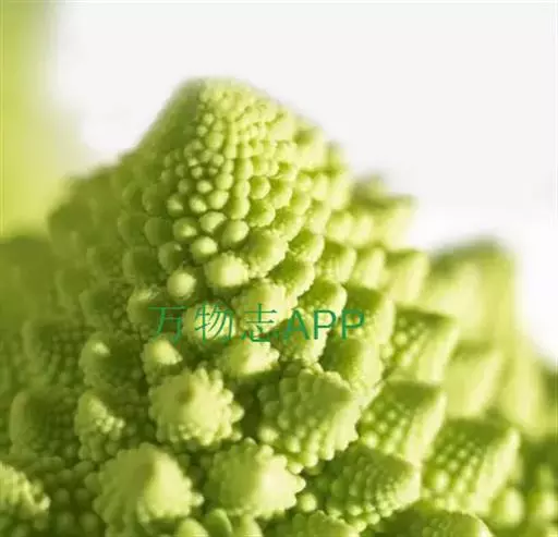 罗马花椰菜,俗称青宝塔,是一种十字花科芸薹属甘蓝种一二年生草本植物,可食用,16世纪发现于意大利。罗马花椰菜花球表面由许多螺旋形的小花所组成,小花以花球中心为对称轴成对排列。它的神奇在于其规则和独特的外形,已经成为著名的分形几何模型。它以一种特定的指数式螺旋结构生长,而且所有部位都是相似体,这与分形几何中不规则碎片形所包含的简单数学原理相似。因此吸引了无数的数学家和物理学家加以研究