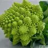 罗马花椰菜 植株生长旺盛,开展度60厘米,株高70厘米,短缩茎高30厘米。叶狭长,叶数约20片。花球着生在短缩茎顶端,花球绿黄色,圆锥形,似宝塔。每个花球由200多个圆锥形的小花球呈螺旋状紧密排列而成,花球紧实、美观。直径为20~25厘米,高17~21厘米,单花球重1公斤左右,也可将单个小花球分期采收。花球品质好,质地细嫩,维生素C含量较一般花椰菜高40%。耐寒及抗病性强。
