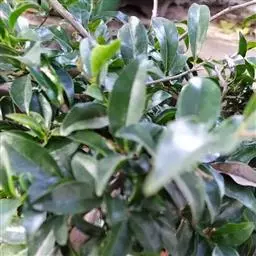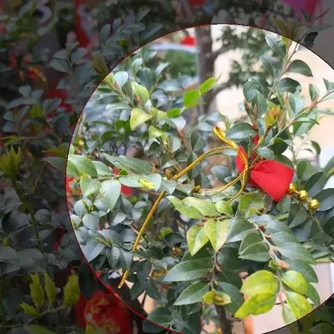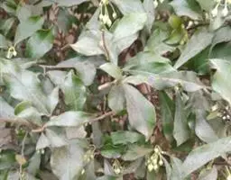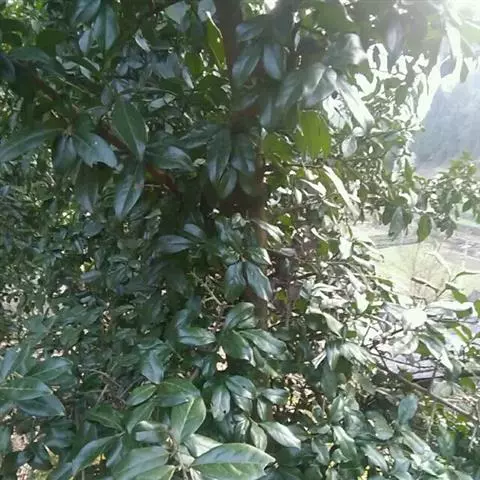 半常绿或落叶乔木,高达5-13米,直径约15-50厘米;树冠近球形,枝多而开展,嫩枝有绒毛,枝端有时成棘刺;冬芽很小,先端钝,有毛。叶薄革质或革质,椭圆形或倒卵形至长圆形,长1.5-6厘米,宽1.5-3厘米,先端钝或圆,基部楔形,叶片有微小的透明斑点,上面黑绿色,有光泽,下面有微小柔毛;叶柄长约3毫米。雄花集成小伞房花序;花乳白色,花冠甕形,芳香,长4-5毫米,有绒毛。