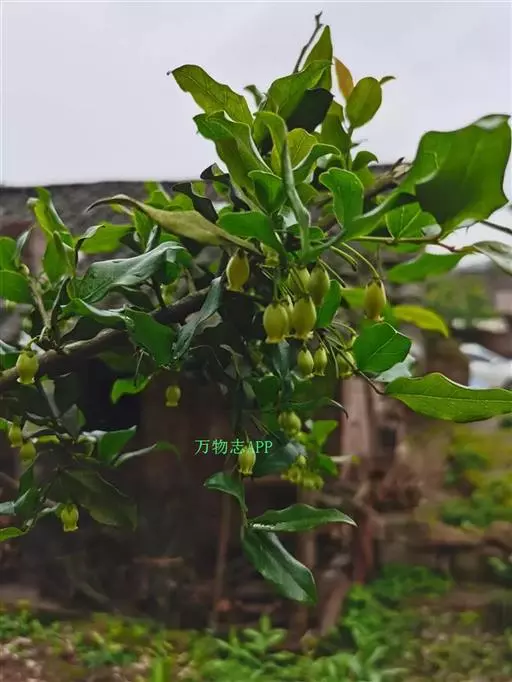 瓶兰花(Diospyros armata Hemsl.)柿科半常绿或落叶乔木,高达5-13米,直径约15-50厘米;树冠近球形,枝多而开展,嫩枝有绒毛,枝端有时成棘刺;冬芽先端钝,有毛。叶薄革质或革质,椭圆形或倒卵形至长圆形,叶片有微小的透明斑点,上面黑绿色,有光泽,下面有微小柔毛;叶柄长约3毫米。雄花集成小伞房花序;花乳白色,花冠甕形,芳香,有绒毛。果近球形,直径约2厘米,黄色,有伏粗毛,果柄长约1-1.2厘米;宿存萼裂片4,裂片卵形。花期5月,果期10月。