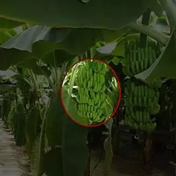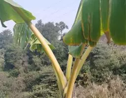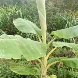 香蕉’),芭蕉科芭蕉属多年生草本植物,植株丛生,有匐匍茎;假茎浓绿有黑色斑点;叶片长圆形,…