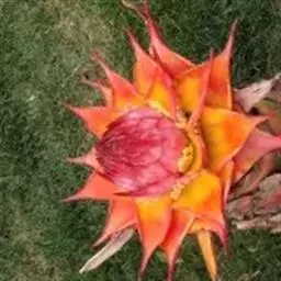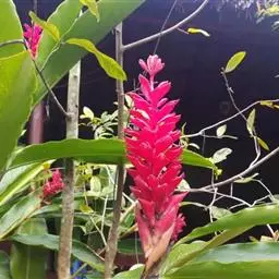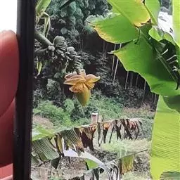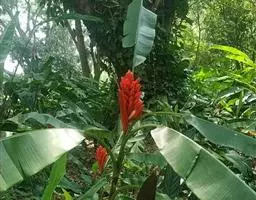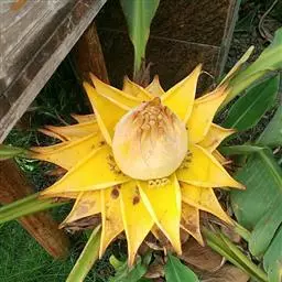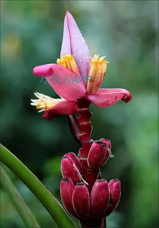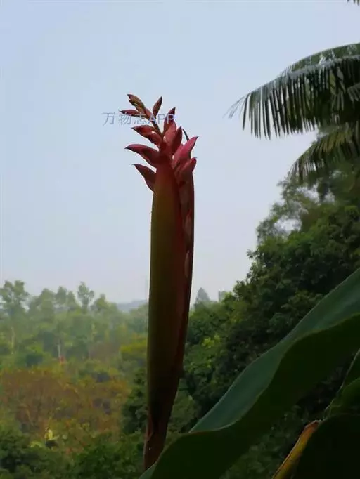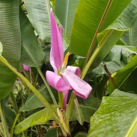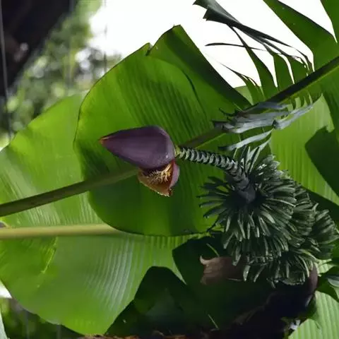 紫苞芭蕉形如一枝亭亭玉立、含苞待放的荷花,但却开在高高的芭蕉树上,这就是紫苞芭蕉。