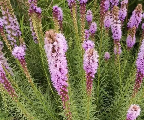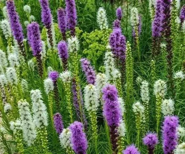蛇鞭菊花葶直立且多叶。叶线形、基生,叶色浓绿。头状花序排列成密穗状,每个花序由300朵左右管状花组成,花紫色,有限花序,花期在夏末秋初的少花季节,约40天。蛇鞭菊姿态优美,马尾式的穗状有限花序直立向上,颇具特色,适宜布置花境或路旁带状栽植,庭院自然式丛植。由于花期长观赏价值极高,不仅是园林绿化树种珍品,也是重要的插花材料。应用于庭院、别墅的花境,挺拔秀丽,野趣十足。作为背景材料或丛植点缀于山石、林缘。也可作切花观赏,是一种有实力的配角。