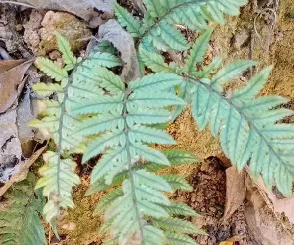 植株高30-60厘米。根茎直立,密被狭卵形深棕色鳞片。叶簇生,叶柄长16-30厘米,基部直径2-4毫米,禾秆色,腹面有纵沟,下部密生披针形及线形黑棕色鳞片,向上部渐成为线形鳞片,鳞片边缘睫毛状;叶片宽披针形或狭卵形,长20-42厘米,宽6-14厘米,先端长渐尖或成尾状,基部圆楔形或截形,二回羽状;羽片20-26对,互生,平展或略斜向上,柄极短,线状披针形,中部的长4-9厘米,宽1-1.5厘米,先端渐尖至尾状,基部偏斜,上侧截形,下侧宽楔形,羽状;小羽片7-13对,互生,略斜向上,密接,柄极短,斜矩圆形,斜的卵形或三角卵形,下部的长5-10毫米,宽4-6毫米,先端急尖或钝,有小刺头,基部斜的宽楔形,上侧有三角形耳状凸,边缘有或长或短的小尖齿;基部上侧第1片增大,卵形或三角卵形,长7-15毫米,宽4-6毫米,有时羽状分裂;小羽片具羽状脉,侧脉常为二叉状,腹面隐没,背面微凹下或微凸起。叶为薄革质,背面疏生纤毛状基部扩大的黄棕色鳞片;叶轴腹面有纵沟,背面密生鳞片,鳞片线形,基部扩大边缘睫毛状,黑棕色间或为棕色。孢子囊群位于小羽片主脉两侧,每个小羽片3-9个;囊群盖圆形,盾状,全缘。