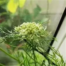 生殖生长阶段,茎端抽生花薹,并发生多次分枝。花序为复伞形花。花小,白色,异花授粉,亦可自花授粉。双悬果,圆球形。