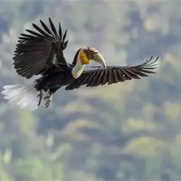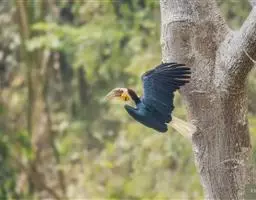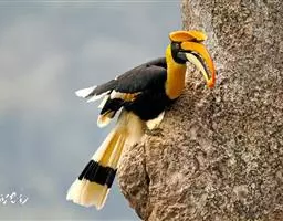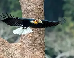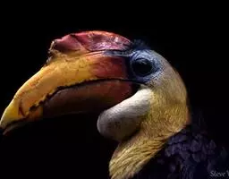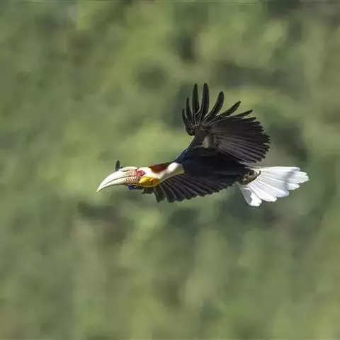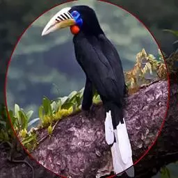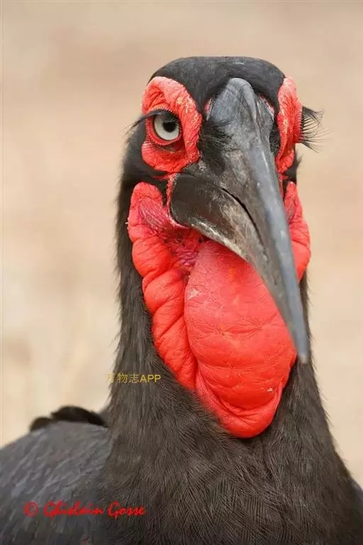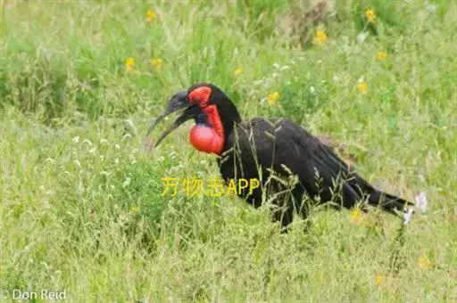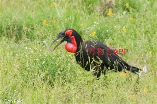 红脸地犀鸟全长约127cm,是犀鸟科中体型最大的鸟。全身体羽为黑色,嘴和脚也为黑色。脸部、喉部及喉囊,裸露的皮肤为朱红色。