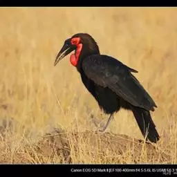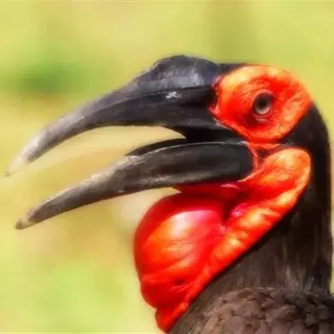 红脸地犀鸟是地栖犀鸟的一种,是非洲常见的地犀鸟。由于外形奇特,是著名的珍惜玩赏鸟,全国部分动物园和鸟园有饲养展出。它们生活在非洲南部,大部分时间在地面上活动。雄性地犀鸟体长可达129厘米,重达6.2公斤,雌性体型稍小。