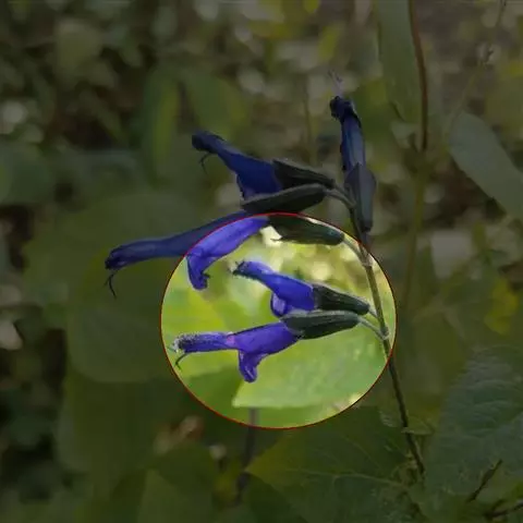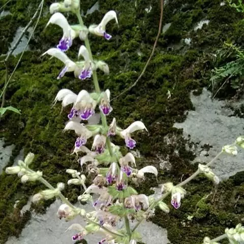 此变种与鼠尾草不同在于叶在茎下部密集,长达13cm,一回或2-3回羽状复叶,小叶多数,小,形状多变,花冠下唇中裂片深凹,2裂片叉开,边缘明显具牙齿。