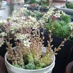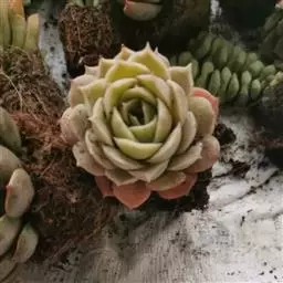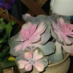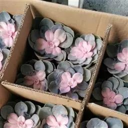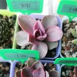 紫珍珠是景天科石莲花属的多年生肉质草本植物。植株中小型;叶片肉质,匙形,呈莲座状紧密排列;叶片粉紫色,…