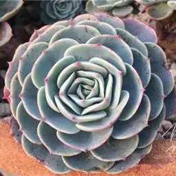 蓝石莲是景天科、拟石莲花属的多肉植物。茎部粗壮,成熟植株茎部木质化。叶片莲座型密集排列,株径不会很大,…