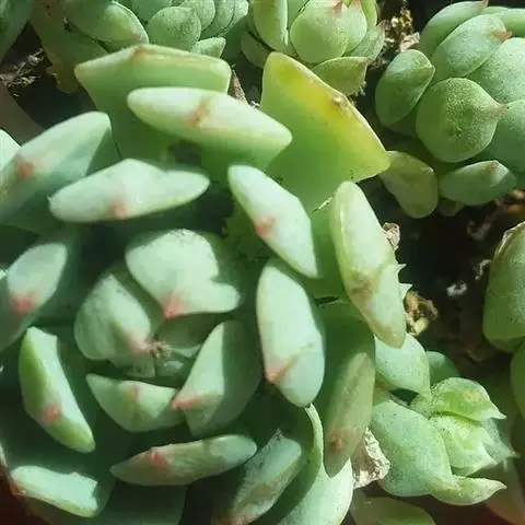 灯美人是景天科的园艺品种,多肉植物。叶片近柱状,丛生,在日照时间长、温差大的环境下会呈现橙粉色。