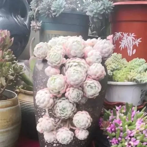 黑王子锦是景天科拟石莲花属的多年生肉质草本植物,是多肉植物的一种,为黑王子的锦化品种,较为稀有。