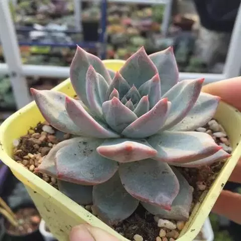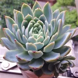 薄叶蓝鸟 叶片蓝绿色,叶尖红色,带粉,花型紧凑,非常漂亮。原产于墨西哥,现世界各地均有栽培。